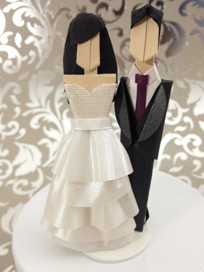 My favorite thing to make is people, hence the custom bride and groom cake toppers. I find the shape and proportions of the human form absolutely beautiful. With a few bends of the paper at just the right places, a flat surface transforms into a figure.